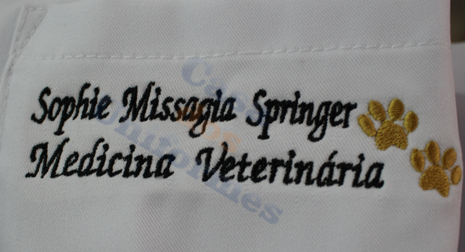 Se você vai fazer um jaleco, invista na personalização dele! Você pode bordar o nome e/ou a profissão no bolso, pode bordar logos de sua instituição de ensino, do seu local de trabalho, do seu curso nas mangas.